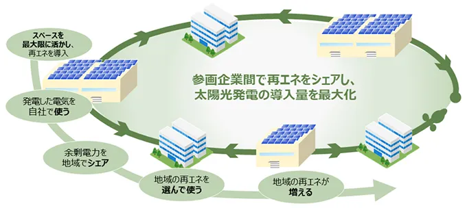 「遠州脱炭素プロジェクト」は、静岡県の遠州地域に拠点を持つ参画企業が、中部電力ミライズとともに、遠州地域の脱炭素化への貢献を目的として太陽光発電の導入量最大化と有効活用に取り組むものです。